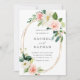 Blush Bloom Wedding Invitation features painted watercolor flowers in blush pink, white, and green foliage with a oval gold frame. For more advanced customization of this design, Please click the "Customize" button. Matching items are also available.