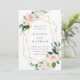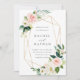 Blush Bloom Wedding Invitation features painted watercolor flowers in blush pink, white and green foliage with a gold geometric frame. For more advanced customization of this design, Please click the "Customize" button. Matching items are also available.