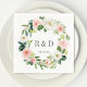 Elegant Wedding Personalized Paper Napkin featuring a wreath of watercolor flowers in blush pink and white with green foliage and leaves. For more advanced customization of this design, Please click the "Customize" button. Matching items are also available.