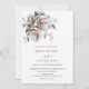 This elegant contemporary wedding invitation features AI created white 3 dimensional blush and white flowers and shadows.