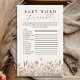 This game was born from a doodle of soft blush blooms and a “what if we made it brainy?” moment. The elegant word scramble keeps guests laughing, guessing, and racing the clock—while the delicate meadow florals add that dreamy, airy baby-in-bloom vibe to your party table.