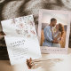 The text-focused layout and generous white space highlight the couple’s names and wedding details while keeping the overall aesthetic light, airy, and understated. A matching photo back provides the option to include an engagement photo without overwhelming the design.