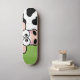 Blushing Cow Skateboard Deck. Design features an embarrassed black and white cow on a green background. Perfect for girl skaters. Copyright © Lisa Marie Robinson All rights reserved.