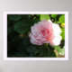 A beautiful capture of this blushing pink rose in full bloom, the sun shining down on it. Pretty green foliage surrounds it.