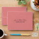 © Socialite Designs. Add a touch of timeless sophistication to your wedding mailings with this customizable blush pink RSVP return envelope. With an coral pink tone and text printed directly on the front, it’s ready to be personalized with your address for RSVP cards. Whether you're planning a romantic ceremony or an elegant soirée, this envelope completes your suite with grace and charm. Ideal for weddings, bridal showers, engagements, or any celebration that calls for thoughtful details.