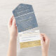 Bar Mitzvah or Bat Mitzvah All-in-One Invitation. Blues and Silver Inks.