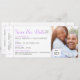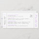 In bright and modern lavender lilac orchid purple, silver and grey, this creative travel theme boarding pass save the date for a destination wedding has space for a photo and room for travel planning details for your guests. A romantic airplane icon and authentic retro plane ticket details including little arrows, a bar code, and box for a seating assignment in a vintage computer font complete the look. Destination weddings require a little more planning about telling guests all the accommodation information earlier than a local wedding, so be sure to include all you can. If you want to simply get the word out while you work out the travel and excursion plans, the design on the back can be deleted entirely, just click 'customize further.'