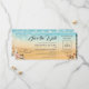 Laissez votre amour l'un pour l'autre prendre le voyage d'une vie et commencer la célébration avec ce merveilleux tropical enregistrer le billet de voyage de date! Parfait pour le couple amoureux de la plage, ce design époustouflant présente un arrière - plan rustique, jaune sombre à bleu aquarelle, des décorations d'étoiles de mer et de coquillages, et de belles lampes à cordes, le tout créant un cadre extérieur parfait pour les deux coeurs dans le sable avec vos initiales et votre date mariage. Personnalisable en quelques clics, il n'a jamais été plus facile de créer la date parfaite pour le mariage de destination plage de vos rêves.