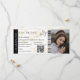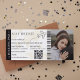 Modern minimalist monogram boarding pass wedding ticket with a simple white and brown background, a photo of the engaged couple, a plane with a loop trail, and an easily customizable save the date template. Don't forget to change the text on the back of the monogram.