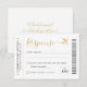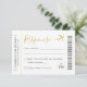 Boarding Pass Ticket RSVP Card with a gold airplane logo in faux gold and black modern and script fonts, perfect for an "around the world" theme birthday party, sweet 16, wedding or bat mitzvah.