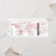 PixDezines boarding pass save the date for any destination wedding with blush pink world map and a tiny red heart to indicate your destination.