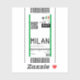 Sticker design based on a boarding pass to Milan Malpensa Airport.
