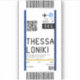 Sticker design based on a boarding pass to Thessaloniki Airport Makedonia, Greece.