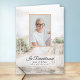 Remember your loved one and celebrate their life with the charming Boardwalk to Beach Funeral Service Folded Program. This scenic custom seaside memorial service timeline features a digitally watercolor painted coastal nature photograph of a rustic wooden boardwalk leading to a sandy beach and ocean with tall green grasses. Customize it with a picture of the deceased, birth and death dates, personal details and order of ceremony of their celebration of life church service. Perfect inspo or idea for a coastal event or burial at sea.