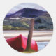 BOAT AND MOUNTAIN LANDSCAPE CLASSIC ROUND STICKER