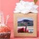BOAT AND MOUNTAIN LANDSCAPE SQUARE STICKER