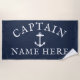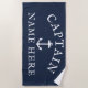 Boat Captain Name Nautical Anchor Navy Blue Beach Towel