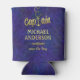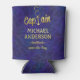 If you sail your own boat or yacht, let everyone know with this cool navy-and-gold nautical can cooler. The design says, "Captain [Your Name]," followed by the name of your boat. The "t" in the word "Captain" is an anchor. The dark blue background has a light coral pattern.