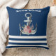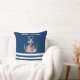Boat Name,Anchor Flowers Navy Blue Striped Throw Pillow