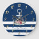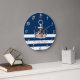 Boat Name,Anchor Flowers Navy Blue Stripes Large Clock