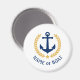 A Personalized round magnet with your boat name, family name or other desired text as needed. Featuring a custom designed nautical boat anchor, gold style laurel leaves and star emblem on white or easily adjust the primary colour to match your current theme.