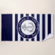 White Navy Blue Stripe Boat Name Silver Grey Anchor Welcome Aboard Beach Towel