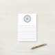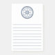 Sticky notes featuring a dark blue, elegant ship's wheel and rope emblem with custom boat name and hailing port. Below are lines for writing.
