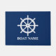 Your Personalized Boat Name with Nautical Classic Ships Wheel helm a Custom Navy Blue Doormat.