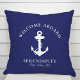 Boat Nautical Anchor Navy Blue Welcome Aboard Outdoor Pillow