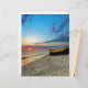 A small boat on a tropical beach.