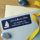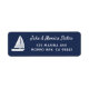 This unique personalized return address label template features a sailboat on a navy blue base and your names in a lively script. The white sailboat includes bits of colour, which lends a warm, handmade flavour that reminds us of a woodblock print or a nicely weathered wood carving. In fact, the illustration that inspired this design was originally made with a simple stamp, which accounts for its charm. You can use two first names, your family name, a business name, or any other format that suits your needs. You can also change the style, colour and size of the text.. Create your own custom look with the intuitive design tools, and please check our store for a large selection of return address labels. We've made a special collection of nautical themed return address labels as well as a more general collection, so please click on the collections tab in our shop to see more!