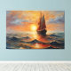 Boat on the high seas with sunset canvas print