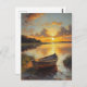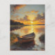 A tranquil painting of a boat resting on the shore at sunset, surrounded by marsh grasses and glowing sky tones, evoking peaceful coastal serenity.