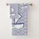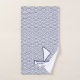 A bath towel set with a boat on a Japanese wave pattern. Customize the towels with your name or your own text.
