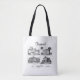 Tote bag has 4 illustrations of Claremont buildings in the 1980s by local artist BOB SMITH. Claremont Depot, Verbal Building, Sumner House, Seaver House.