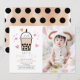 This cute and kawaii "let's par-tea" gender-neutral 1st birthday photo invitation features a boba/bubble tea with a smiling face. The reverse side features a milk tea brown background with a black polka dot patterns. Personalize it for your needs.