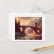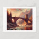 A picturesque stone bridge arches gracefully over a tranquil river, set against a backdrop of dramatic mountains and swirling skies. Warm, earthy tones evoke a sense of serene beauty and timeless charm.