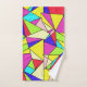 Je regardais Bauhaus suivi de Mondrian, et c'est arrivé. Oups ! Un mur de jolis triangles multicolores fait office de serviettes de bain pour tout décor. Conseil design; Avoir une salle de bain neutre avec ces accessoires vifs!