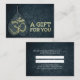 YOGA Meditation Instructor Studio Gift Certificate Card Template - Elegant Black and Gold Foil OM Symbol and Bodhi Leaf on Floral Damask Background.