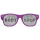 An auto repair sign in gritty black and white has been divided in half to make these fun glasses.