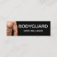 Modern professional bodyguard business card template in a in bold and minimal two side design with image of body muscles and your name feaatured on the front and your contact and services listed on the flip side. Designed for an independent bodyguard, security consultant, or bouncer.