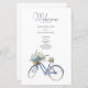 This bohemian inspired wedding program features a blue bicycle carrying a basket filled with beautiful blue and white flowers and a pair of lovebirds on the seat. Sweet, simple and elegant. Easily personalize this design with your information and complete the look with with the stationery and accessory options with this theme. Especially nice for spring and summer weddings. Based on an original watercolor by © Lisa Audit Art. Surround yourself with heartwarming art.