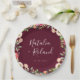 Elegant watercolor colourful bohemian floral and foliage frame, personalized paper plates in burgundy. Designed to match our Bohemian Blooms Wedding Collection.