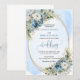Set the tone for an unforgettable celebration with this elegant watercolor wedding invitation, beautifully designed with dusty blue florals, soft white peonies, and delicate eucalyptus