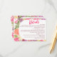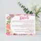 Guide your guests effortlessly with our Bohemian bright floral arch script chic wedding Details Card. Featuring a beautiful floral design, this card elegantly communicates hotel, accommodation, RSVP, and transport details with pretty hand painted bright and bold modern wild flowers mix a vintage feel, with coral peonies, purple flowers, pink roses and greenery with a botanical boho themed wedding party celebration. With a modern script typography and neon pink.