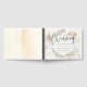 Trendy geometric frame of bohemian-chic dried palm fronds, white orchids and anthurium. Back of book features sandy watercolor wash. Personalize text font style, colour, and size.