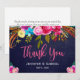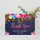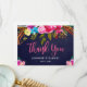 Bohemian Floral Pink Navy Script Wedding Thank You Card