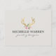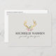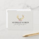 Coordinates with the Bohemian Gold Antlers with Flowers II Business Card Template by 1201AM. An illustration of deer antlers in faux metallic gold is combined with a bouquet of flowers to provide a bohemian aesthetic on this personalized postcard template. Great to use for sending thank you's to customers, for announcements, personal correspondence, and more.