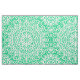 Elegant white lace abstract hand drawn bohemian symmetrical mandala pattern on dark green background.