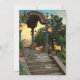 Romantic bohemian medieval wedding invitation featuring your custom photo on the front (optional). On the back is a QR code, which you can customize with your own website URL (or delete the QR code). A pretty gazebo with flowers adds to the atmosphere.